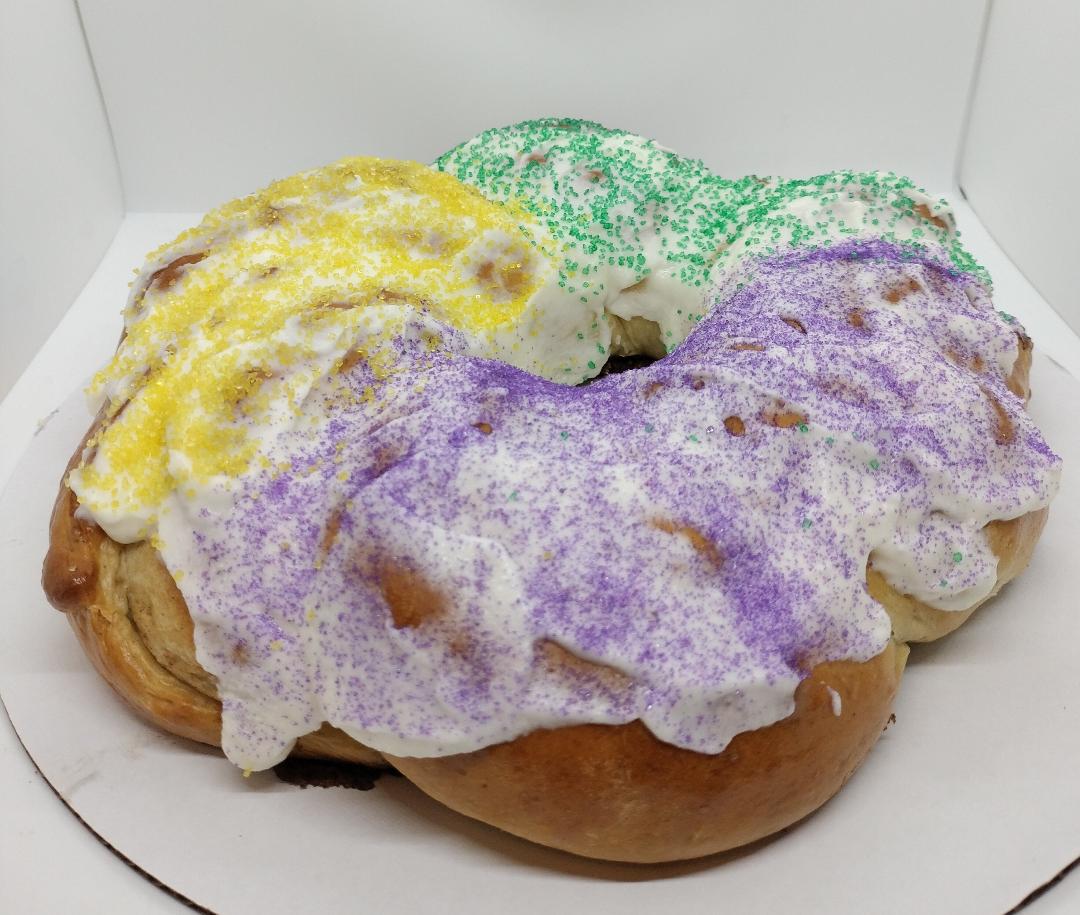 Celebrate Mardi Gras and satisfy your sweet tooth with our King Cake! This traditional treat is filled with a delicious filling of your choice, making each bite a sweet surprise. Try it now to add some fun to your dessert game!