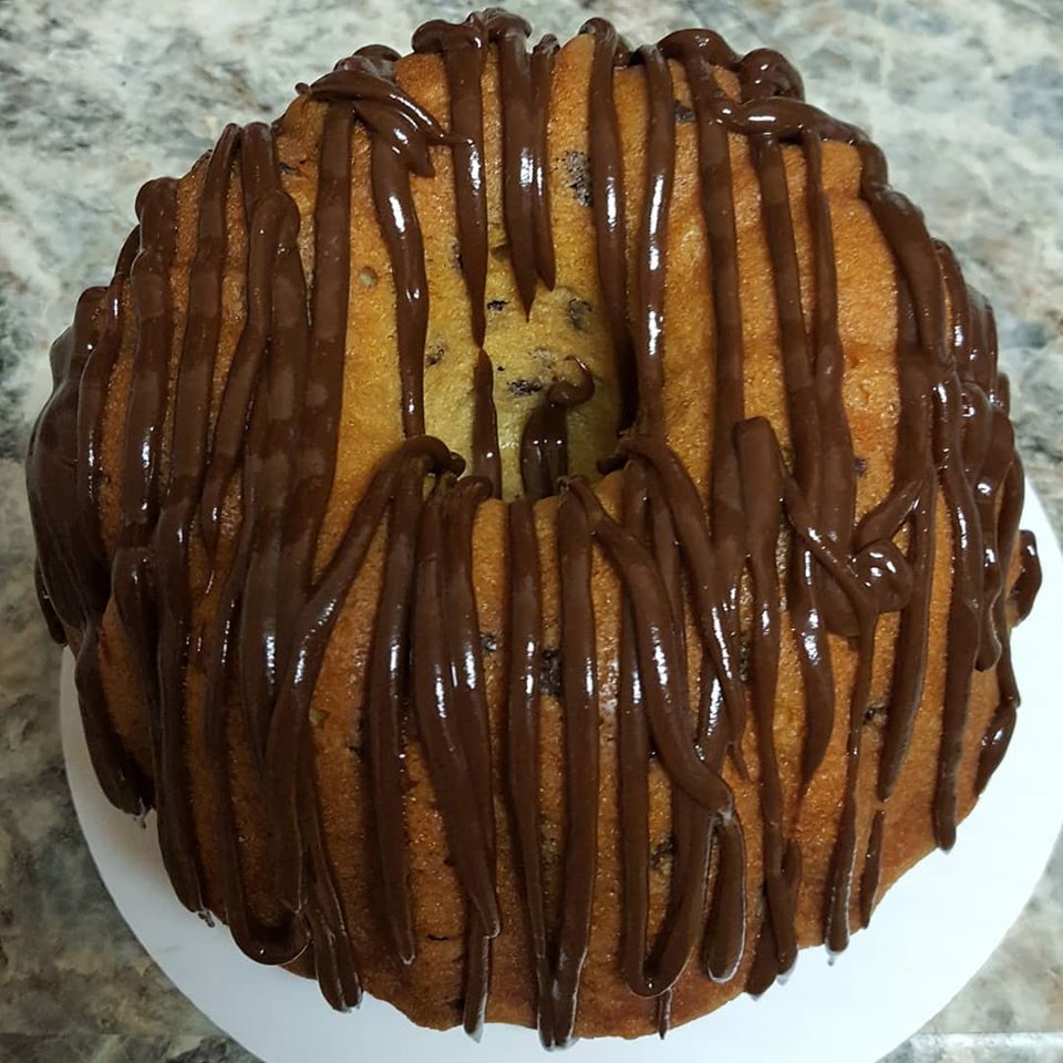 Indulge in a slice of heaven with our peanut butter chocolate chip Bundt cake! Made fresh with a mouth-watering peanut butter cake and loaded with chocolate chips, this Bundt cake is the perfect treat for any occasion. Whether you're celebrating a milestone or just craving something sweet, our Bundt cake is sure to satisfy your taste buds. Don't miss out on this irresistible dessert, order yours today! Our large size serves 10-14.