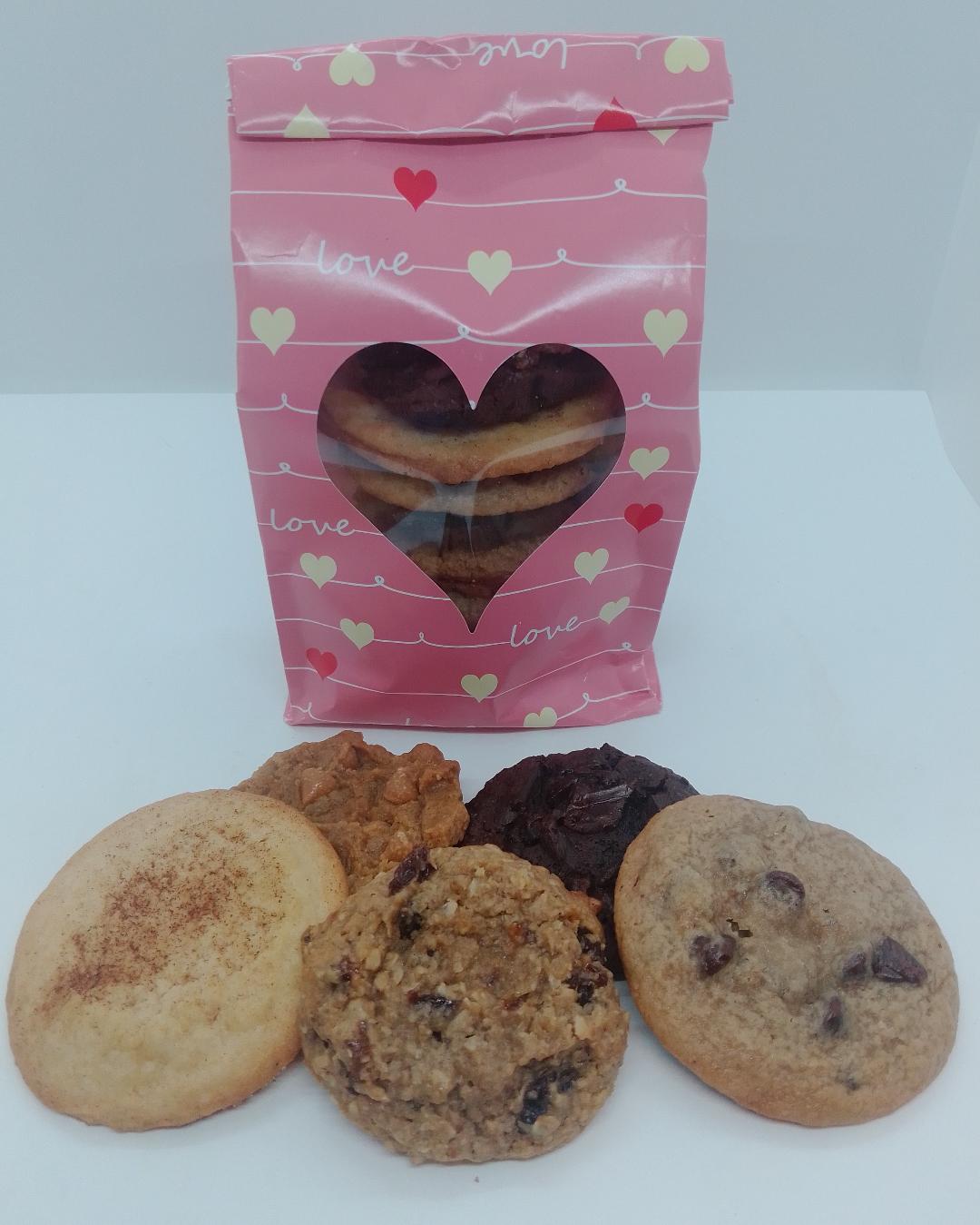 Bite into love with our Valentine's Day Assorted Cookies! These homestyle cookies come in a variety of flavors and are the perfect treat to share with your special someone. Whether it's a romantic gesture or a sweet surprise, our cookies are sure to spread love and joy. Sprinkle some Valentine magic with a cuddly bear or a sweet chocolate rose (or both!) to your order.